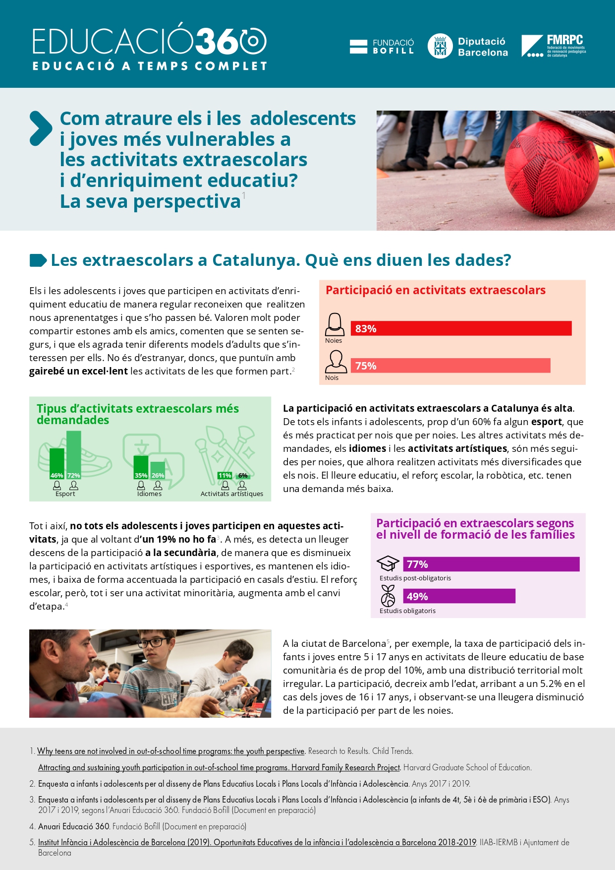Infografia que sintetitza diferents recerques recents sobre la participació d’adolescents a les activitats extraescolars i d’enriquiment educatiu.